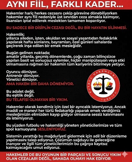 Bu kişiler, haklarını aramak için “Futbol Hakemleri İçin Adalet” platformu adı altında bir araya geldiler.