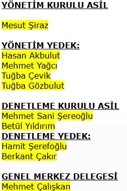 Listede görüldüğü gibi yönetimin çoğu faal değil ve çoğu da istifa etmiş vaziyette. Acilen bir olağanüstü kongre şart.