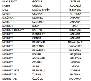 Mehmet Kaftancı Bölgesel gözlemci listesinde var..