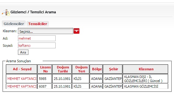 Gözlemci klasmanlarını incelerken bir şey dikkatimi çekti. Gaziantep bölgesi gözlemcilerinden Mehmet Kaftancı hangi klasmanda yer aldığını bir türlü anlayamadım. Bakalım siz anlayabilecek misiniz?