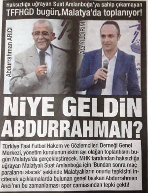 Bir de şuanda Suat Arslanboğa Malatya değil Eskişehir bölgesi hakemiydi. Malatyalılar Eskişehirlilerden daha mı bilgililer? Onlar hak aramasını bilmiyorlar mı?