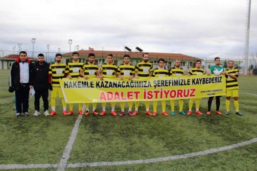 Futbolcular maça “ Hakemle Kazanacağımıza Şerefimizle Kaybederiz… Adalet İstiyoruz. Şanlıurfa Tarımspor Kulübü” yazılı pankart ile çıktı.