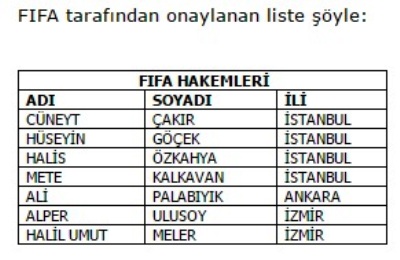 FIFA kokartı takacak hakemler için 11 Ocak Çarşamba günü saat 15.00'te tören düzenlenecek. 01.01.2017 tarihinden itibaren geçerli olacak FIFA kokartlı hakemler listesinde; FIFA Hakemleri, FIFA Yardımcı Hakemleri, FIFA Kadın Hakemleri, FIFA Kadın Yardımcı Hakemleri, FIFA Plaj Futbolu Hakemleri, FIFA Futsal Hakemleri ve FIFA Kadın Futsal Hakemi yer alıyor.