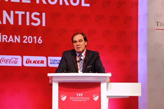 Güven ve performanstan bahsetmişken uluslararası alanda görev yapan tüm hakemlerimizle gurur duyduğumuzu bir kez de bu kürsüden ifade etmek istiyorum. Özellikle EURO 2016'da ve RİO 2016'da görev alacak hakemlerimize, başta Cüneyt Çakır olmak üzere hepsine başarılar diliyorum. Futbol markasının değerini yükseltmek ve yüceltmek istiyorsak, tesisleşme hamlemizin hız kesmeden devam etmesi gerekiyor. Bu sebeple, Riva'da oluşturduğumuz Futbol Vadimizi uluslararası örneklerinin çok daha önüne geçirecek, yeni idari binamız, otel ve kongre merkezi ile yeni sahaların temelini yaz aylarında hep birlikte atacağız.